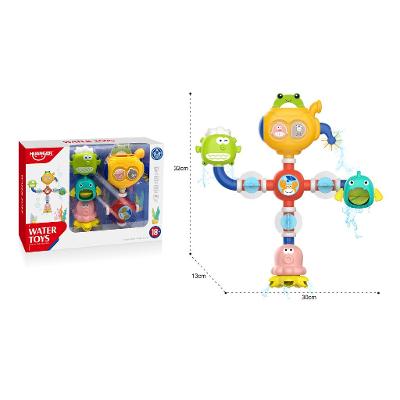 Jucarie pentru baie care sporeste atentia copilului mic. La trecerea apei prin conducte, rotitele se vor invarti.