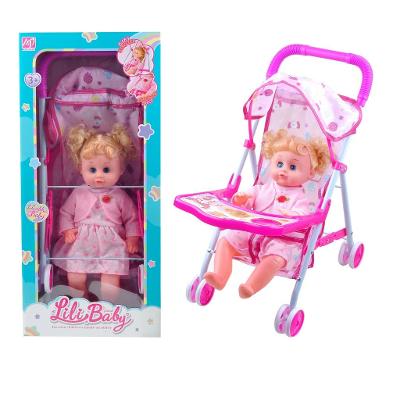 Carucior papusa bare metalice cu bebelus fata cu sunete