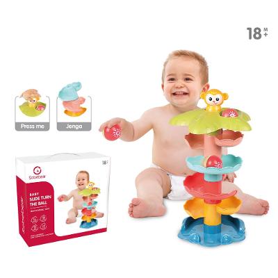 Impreuna cu un adult, copilul poate sa asambleze toboganul, sa invete culorile, sa-si exprime preferinta pentru o anumita pozitionare. La final, maimutica din varful "copacelului" poate fi apasata si jocul incepe: lasa bila sa cada pe tobogan! Compozitie material: plastic.