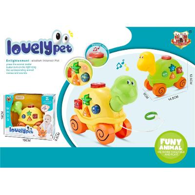 Jucarie simpatica de tras, antrenanta pentru copilul mic. Apasa butoanele pentru a activa sunetele si luminile. Compozitie material: plastic.